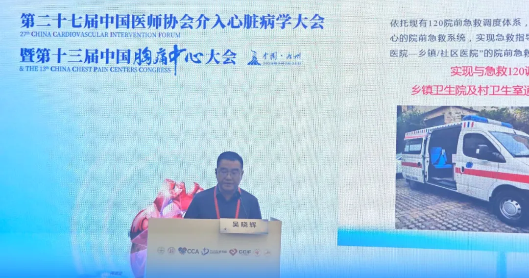 大會中,武漢大學(xué)中南醫(yī)院興山醫(yī)院吳曉輝院長進(jìn)行了興山全域智慧胸痛中心解決方案的建設(shè)經(jīng)驗分享。主要圍繞“實現(xiàn)信息共享和業(yè)務(wù)協(xié)同,建立實時質(zhì)控體系,實現(xiàn)救護(hù)車和院內(nèi)信息系統(tǒng)互聯(lián)互通和業(yè)務(wù)協(xié)同,提升急救轉(zhuǎn)運能力;建設(shè)生命體征信息傳輸系統(tǒng),實現(xiàn)院內(nèi)外信息無縫銜接,逐步健全覆蓋現(xiàn)代化急救保障體系。”