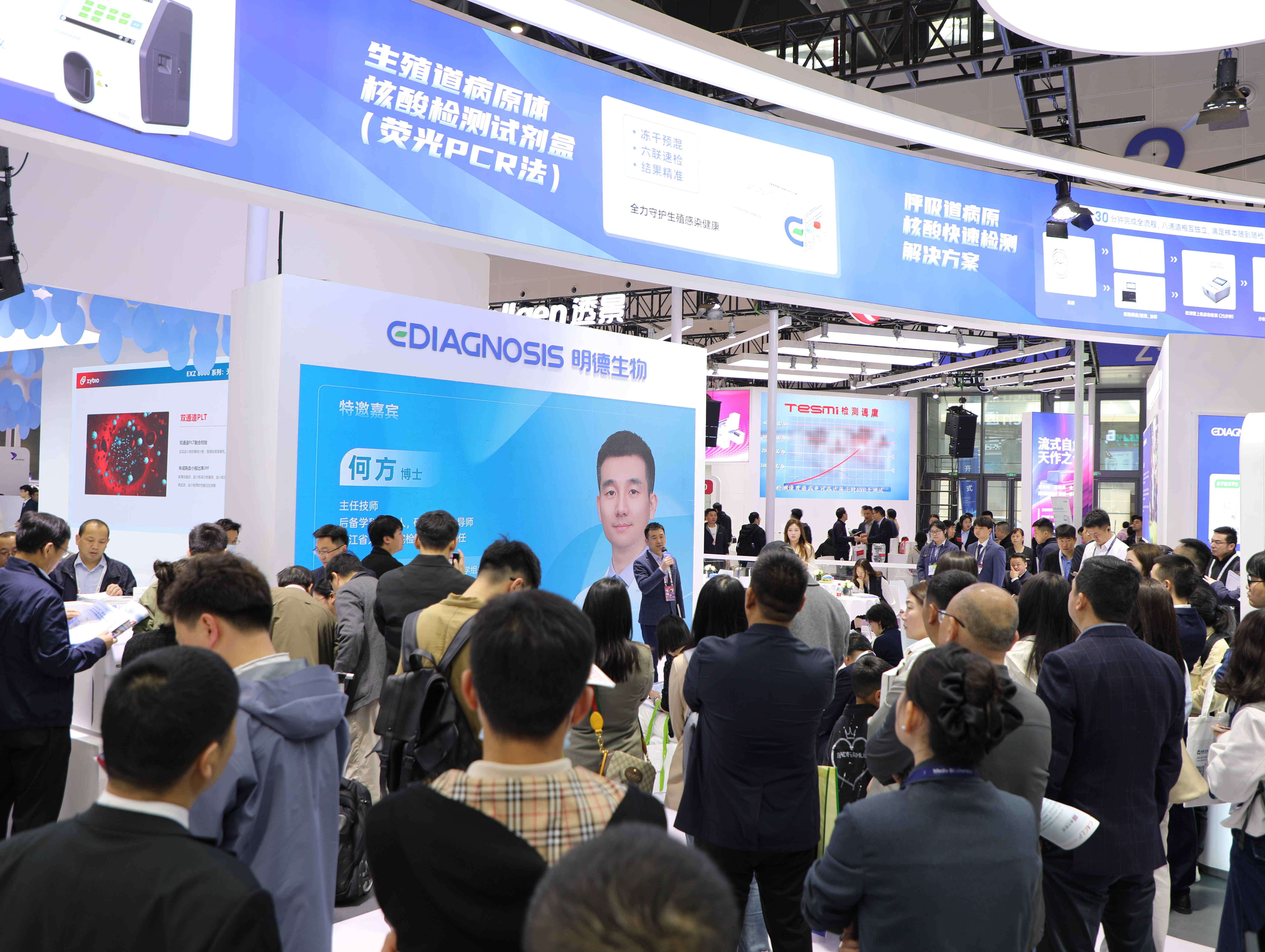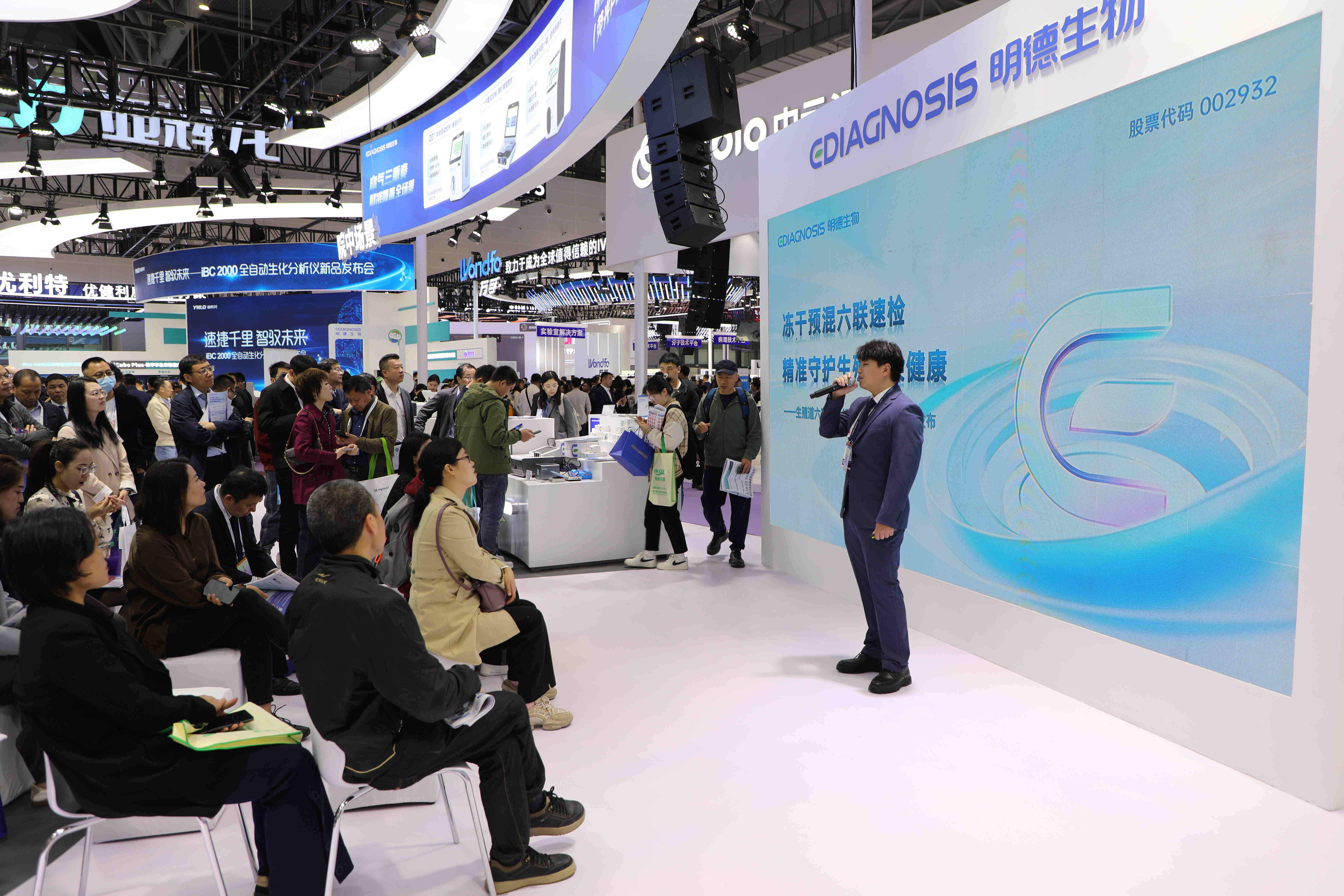 發(fā)布會現(xiàn)場氣氛熱烈,明德展臺始終被人流包圍;迎h(huán)節(jié)更是激發(fā)了觀眾的熱情參與,人潮涌動,展現(xiàn)出了明德生物新品的吸引力。