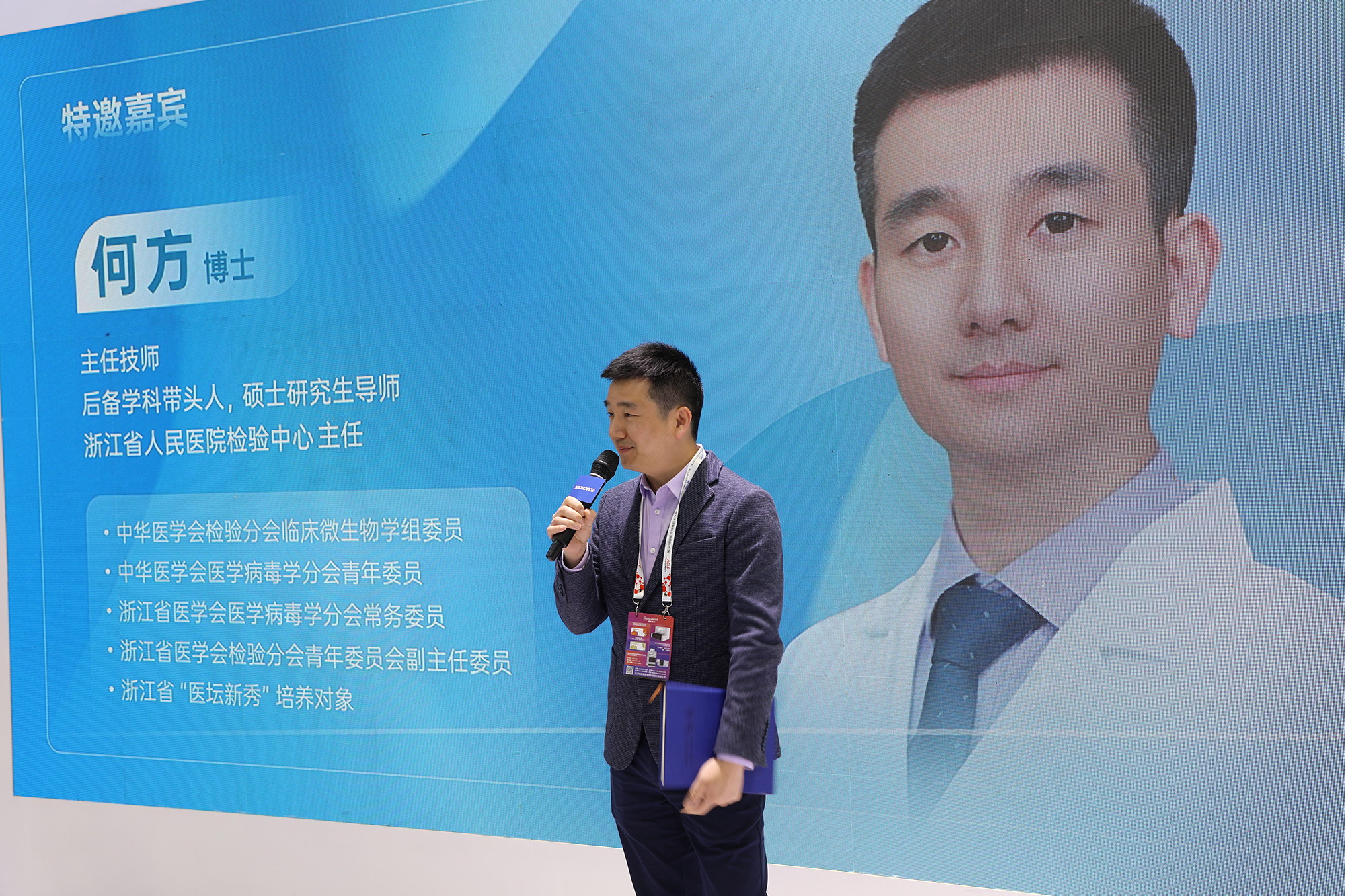 大會首日,明德生物以 “更全面,更精準” 為主題,舉辦了備受期待的新品發(fā)布會。臨床分子生物學檢驗領(lǐng)域的權(quán)威專家何方主任親臨現(xiàn)場,并發(fā)表開場致辭。何方主任就病原微生物分子診斷領(lǐng)域的技術(shù)革新如何推動診療效率與質(zhì)量的提升展開了深度分析,為發(fā)布會奠定專業(yè)且極具前瞻性的基調(diào)。