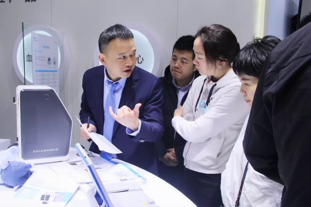 明德生物新產(chǎn)品吸引了眾多專業(yè)觀眾前來咨詢交流,化學(xué)發(fā)光、血氣、分子診斷、胸痛中心板塊的展臺前都聚集了大量用戶。展會攜帶的2000多份產(chǎn)品資料,全部被觀眾領(lǐng)完。明德人個個精神抖擻,耐心、細(xì)心解答客戶們的提問。