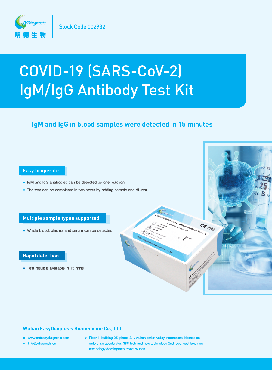 明德生物新型冠狀病毒(2019-nCoV)IgM/IgG抗體檢測試劑盒(膠體金法)支持全血、血漿、血清多種樣本類型,15分鐘出結(jié)果。目前已進(jìn)入多個(gè)國家試用和銷售,產(chǎn)品質(zhì)量得到海外用戶的好評。