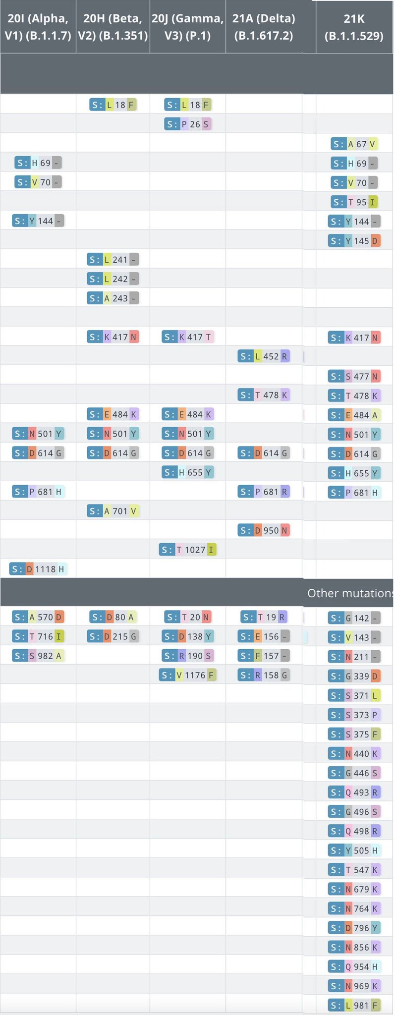 △五種突變株 alpha、beta、gamma、dental、omicron的突變對(duì)比